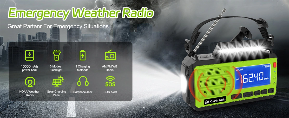 The star feature of the MD-091P is its 10,000mAh rechargeable battery—five times the capacity of standard emergency radios. It supports hours of non-stop radio use, days of intermittent flashlight operation, and most importantly, 3-4 full charges for a typical smartphone. Whether you’re coordinating with family during an outage or using GPS to find your way out of the woods, this battery ensures you won’t go dark when it matters most.