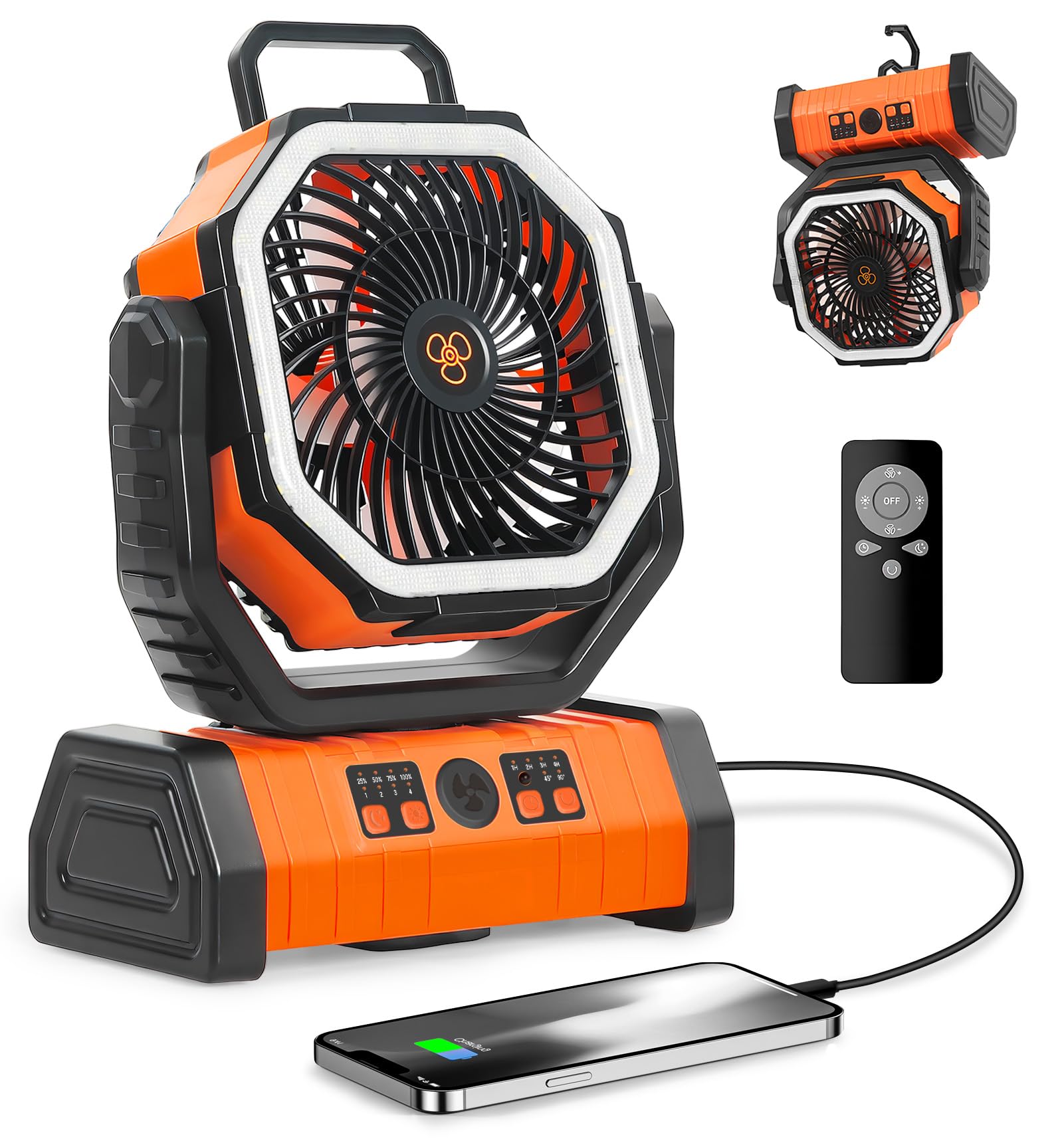 Concebido para o aventureiro moderno, o Ventilador de Acampamento ao Ar Livre F6 com Luz LED Integrada redefine as soluções de refrigeração portáteis. Combinando funcionalidade robusta com características inovadoras, este ventilador garante conforto, conveniência e ambiente em qualquer cenário exterior. Quer esteja em campismo, obras ou atividades recreativas, o F6 oferece necessidades.