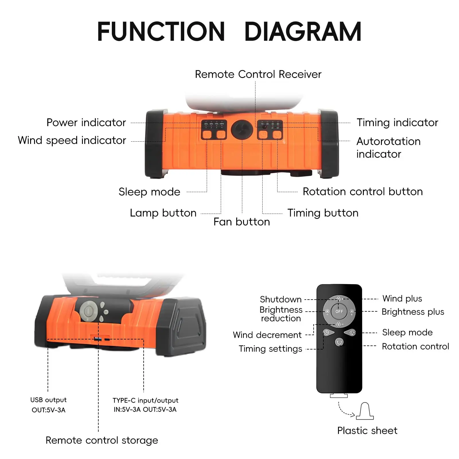 - Ventilador de camp controlo remoto sem fios